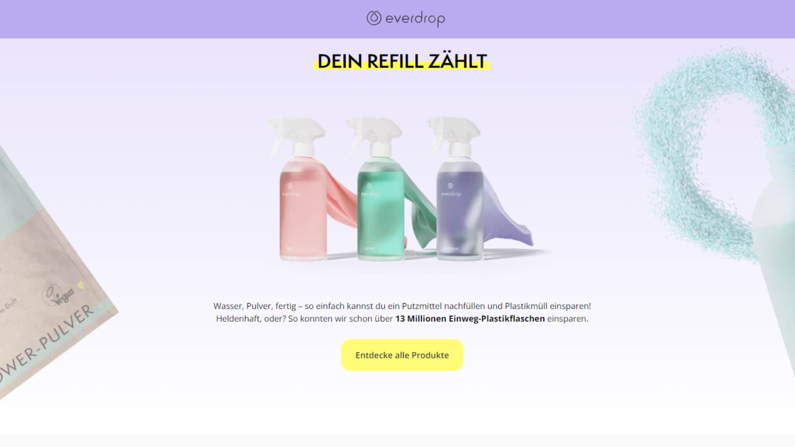 Hast du jemals von everdrop gehört? Diese neuen Putzmittel sind einfach der Hammer! Warum? Ganz einfach: Sie sind super effektiv, umweltfreundlich und die Zukunft des Reinigens. Die Produkte sind in Glasflaschen, ohne schädliche Inhaltsstoffe, und decken alles ab – von Badreinigern bis hin zu Spülmitteln. Und das Beste: everdrop versendet auch Sets und Tabs für die Küche und das Waschen, die du dir bequem nach Hause liefern lassen kannst. Also, was hält dich noch ab? Hol dir jetzt die Power-Pulver von everdrop und erlebe eine revolutionäre Art des Reinigens!